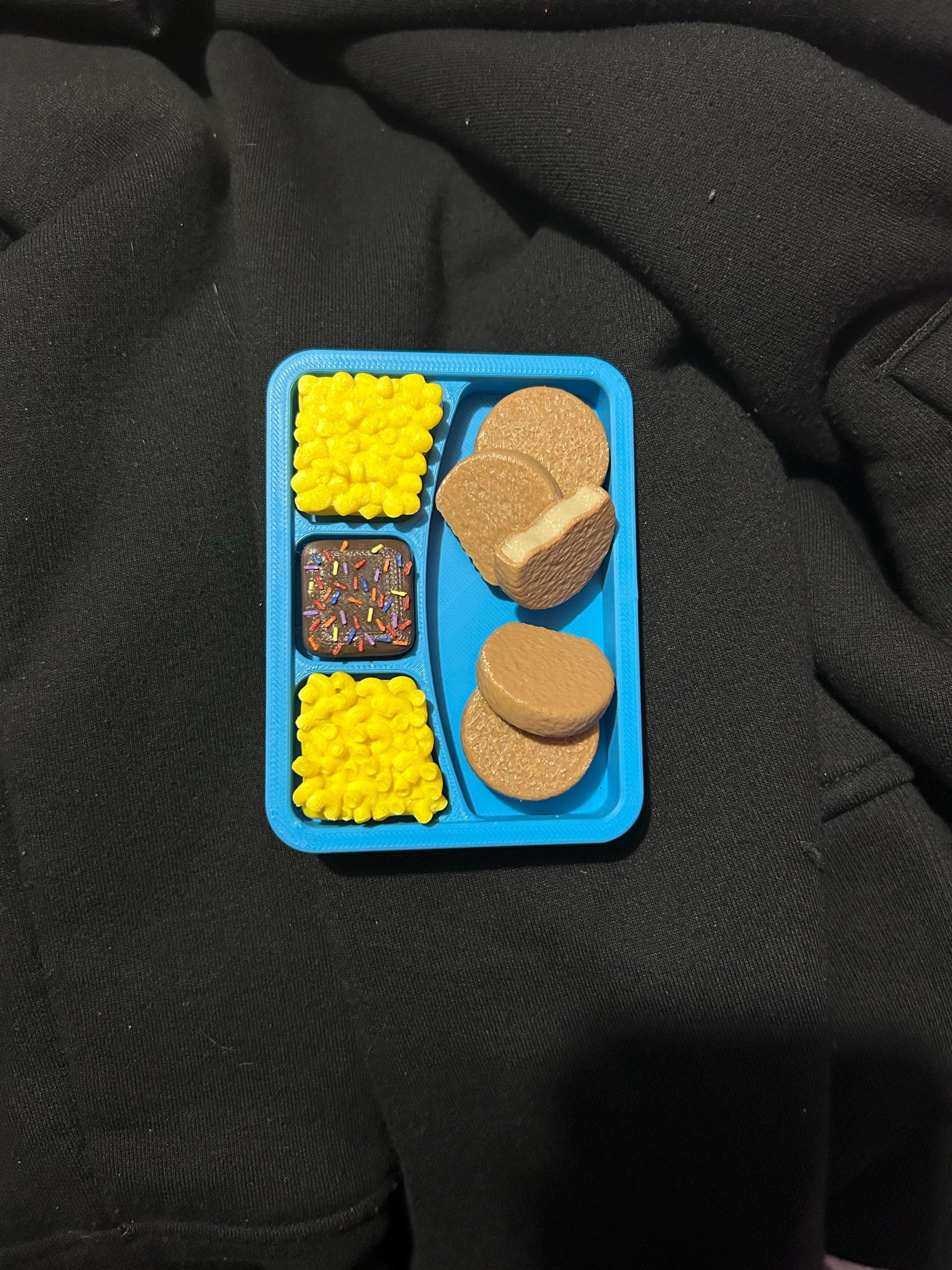 3D Printed Kid Cuisine fidget clicker, can come with chicken nuggets or drumsticks and with or without a keychain.